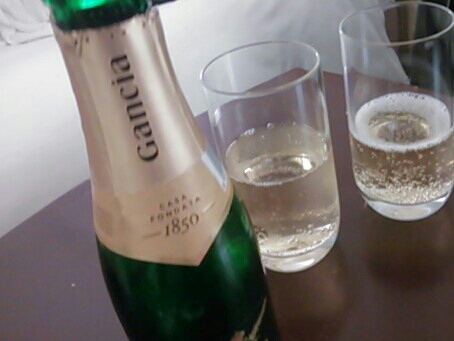 そして、ラストはシャンパンで乾杯。…のつもりだったんだけど、シャンパンの飲める店予約取れなくて、ホテルの部屋でスパークリングワインで乾杯した。っていうか、3日間飲み続けて、付き合ってくれたせとかちゃんに大感謝ですよ!